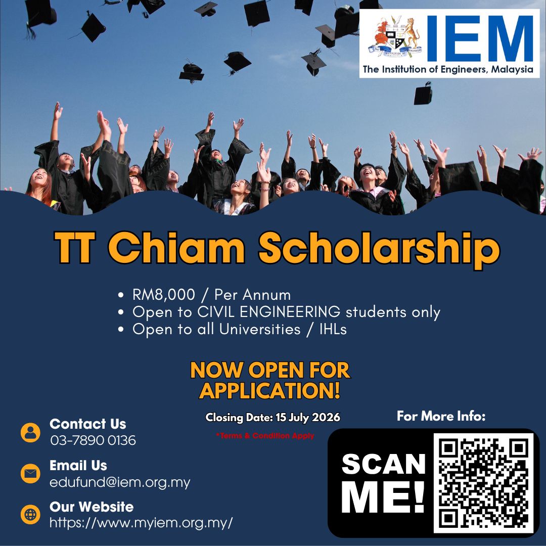 Please send in your application to xavey@iem.org.my / edufund@iem.org.my or for further enquiries call us at 03-7890 0136. Terms & Conditions apply. Closing Date Application : 15 July 2026 TT Chiam Scholarship Application Form